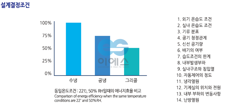 냉방기, 난방기(히터, 증기) 및 제습기를 이용하여