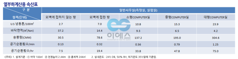 실내의 공기에 영향을 받는 특수한 상황을 가진 실내의 요구조건에 맞게